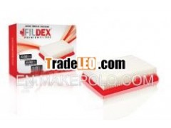 OE Quality Heavy Duty Air Filter by FILDEX CANADAFILDEX® premium air filters deliver clear air, free of mostpollutants and particles to the engine. As a result the combustionchamber remains highly robust and functional at all times, leadingto a longer life for the engine. Our advance filtration mechanism,make it impossible for harmful particles to scape. Our improvedduct holding capacity increases the filters’ life quantity.Therefore, FILDEX® filters undeniably exceed OEM specifications.When tested FILDEX® air filters show an increase in fractionalefficiency and a lower media restriction due to high filtrationefficiency. Engine protection is essential and relevant to manyother important functions; such as, fuel efficiency and temperaturecontrol. Filex premium air filter offer an all-over engineprotection by producing durable framing, media support and strongerseal protection.